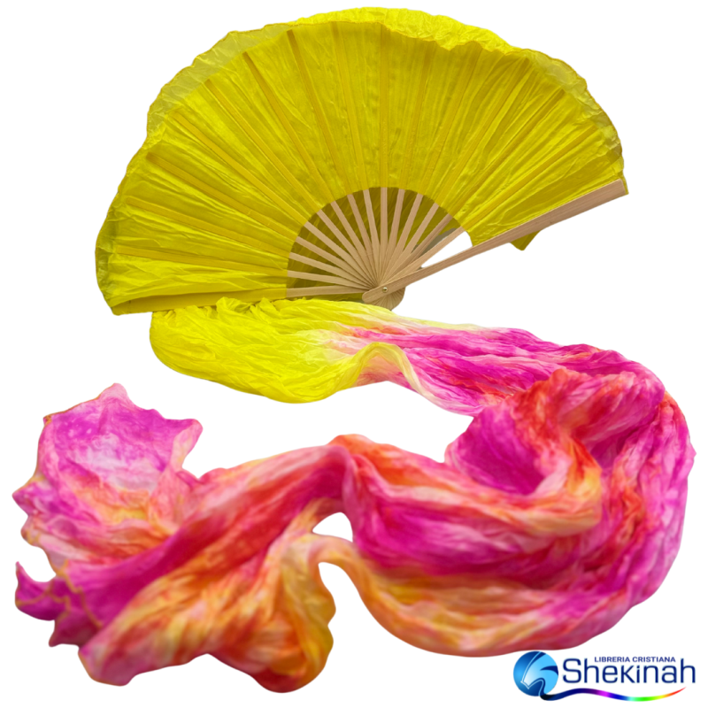 El significado de este abanico es Plenitud. Color: Amarillo y tie dye Amarillo y Rosa . Abanico incluye estuche para guardarlo.