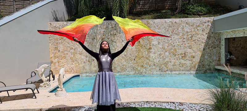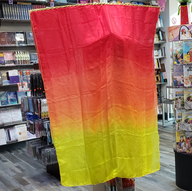 Bandera FLEX (2 banderas en seda). Significado: Fuego. La combinacion de colores siempre será la misma, pero podria variar de estilo ya que cada bandera es pintada a mano y los patrones pueden variar. Bandera Flex incluye estuche para guardarla.