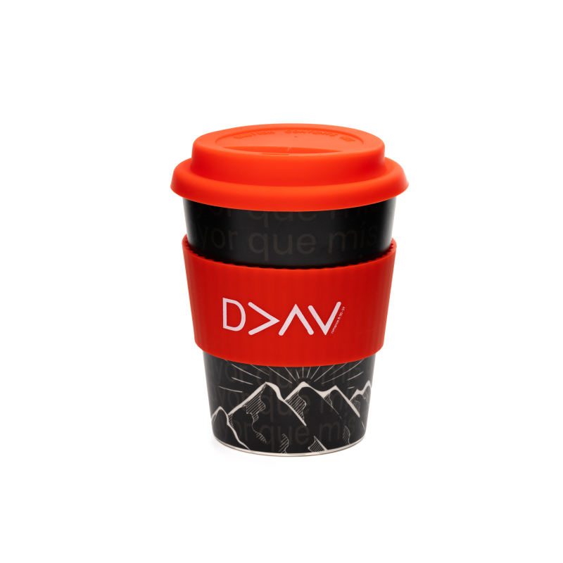 Vasos con Tapa para el cafe u otra bebida. Estilo:Dios es mayor que mis altas y bajas (Romanos 8:38-39) (negro)”Pues estoy convencido de que ni la muerte ni la vida, ni los ángeles ni los demonios, ni lo presente ni lo por venir, ni los poderes, ni lo alto ni lo profundo, ni cosa alguna en toda la creación podrá apartarnos del amor que Dios nos ha manifestado en Cristo Jesús nuestro Señor.“