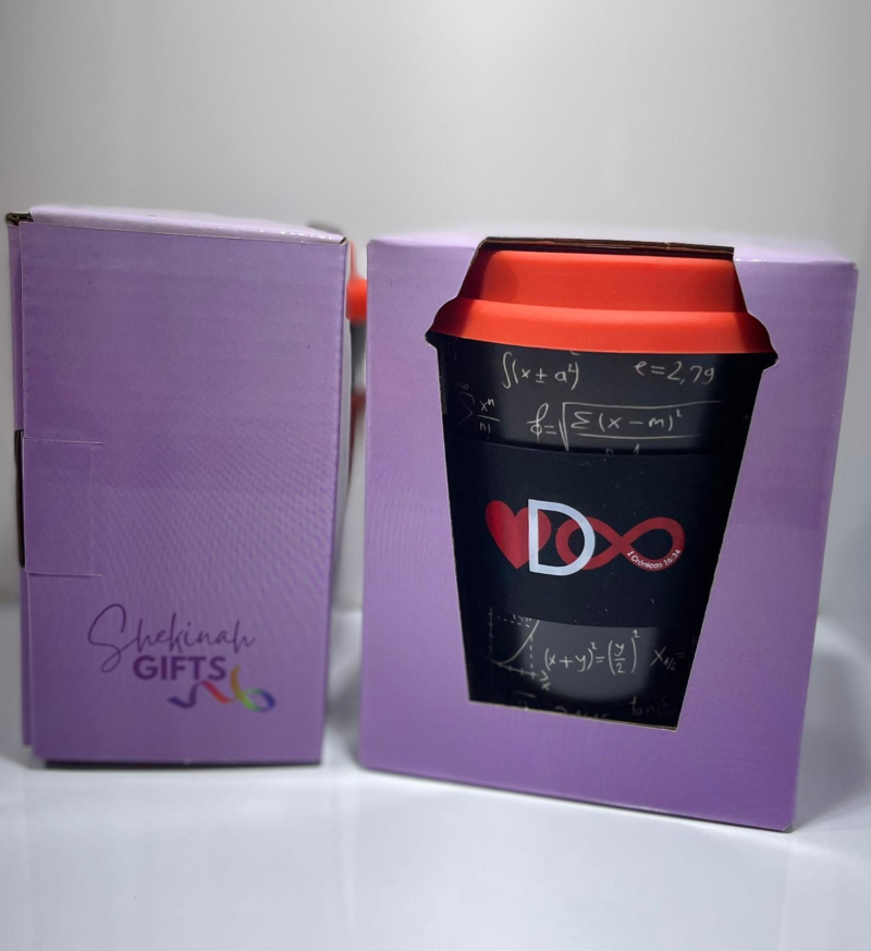 Vasos con Tapa para el cafe u otra bebida. Estilo: Infinito (1 Crónicas 16:34) ”»Den gracias al Señor porque él es bueno; su gran amor perdura para siempre.“