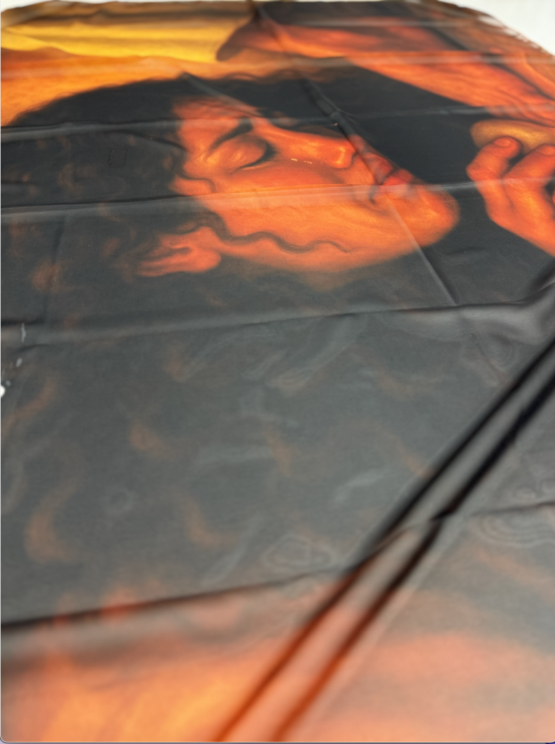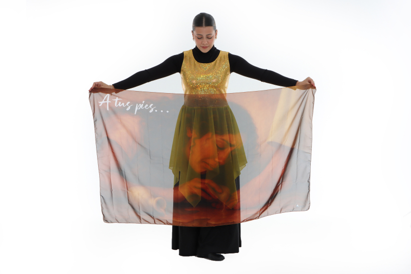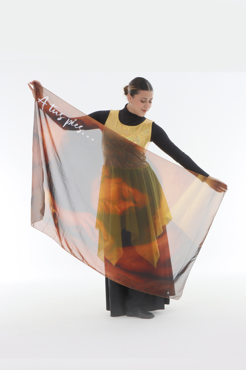 Hermoso manto en material opera, tamaño 35" X 57".