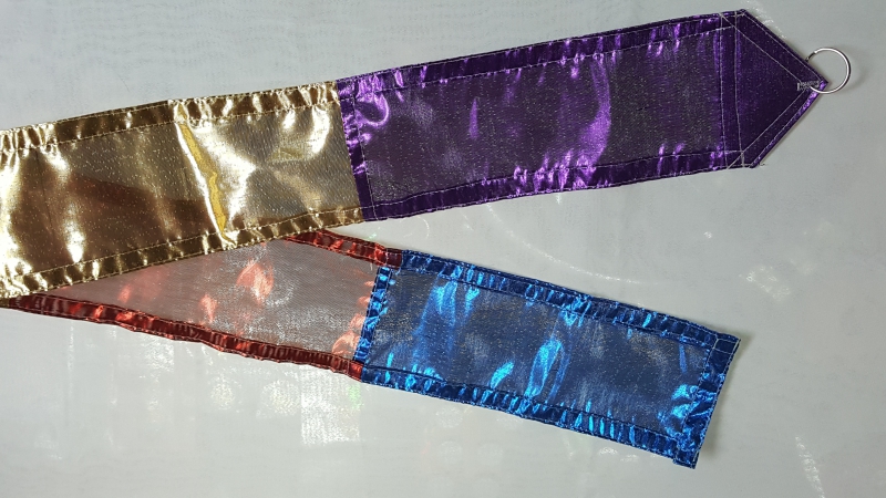 Streamer de color combinado.  3.5 pulgadas de ancho X 36 pulgadas de largo.  color metalico.   Ideal para niños de 5 años o menos.