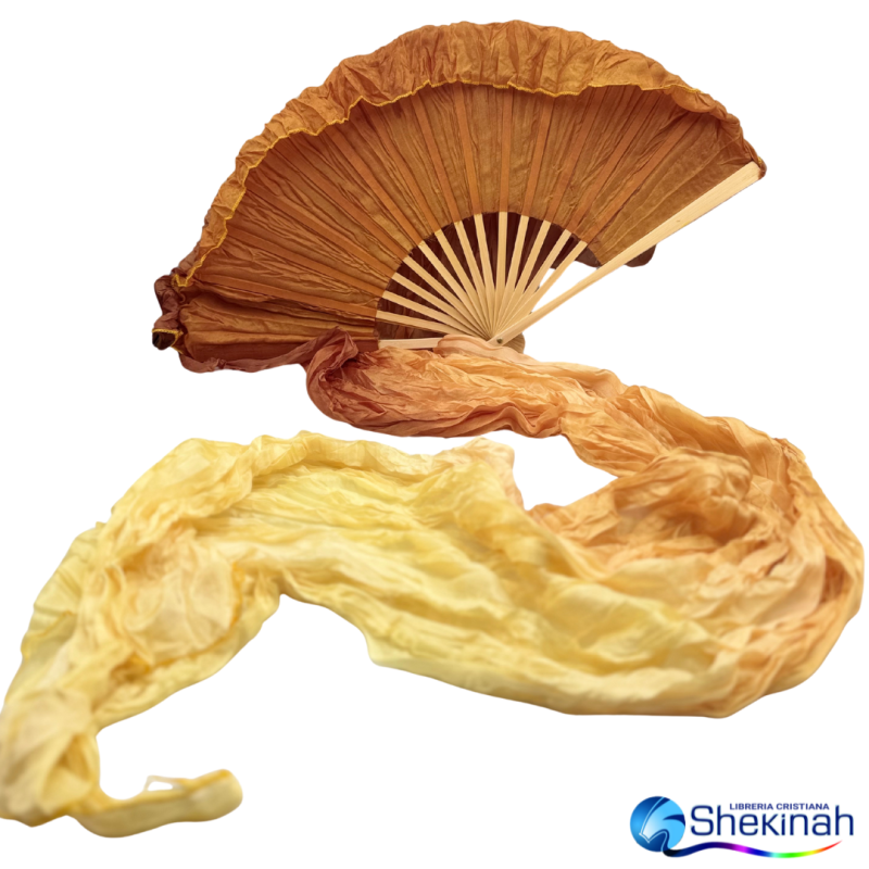El significado de este abanico es Tierra Santa. Amarillo claro y marrón.   Abanico incluye estuche para guardarlo.