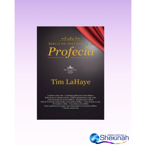Por primera vez, ahora hay una Biblia que reúne una biblioteca de sabiduría y estudio de parte de más de 48 reconocidos expertos en profecía bíblica, dirigidos por el Dr. Tim LaHaye. Cronologia grafica de eventos biblicos * Referencias en columna central * Graficos panoramicos a todo color * Linea de tiempo de sucesos biblicos * Mas de 70 articulos relacionados con la profecia biblica * Introducciones a los libros * 84 Cuadros y tablas * Concordancia de la Biblia * Notas explicativas de pasajes clave relacionados con la profecia biblica * Letras de Jesus en rojo * Y mucho, mucho mas...