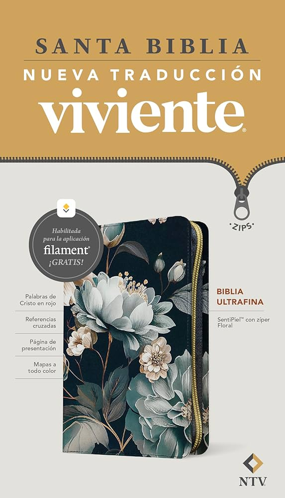 La lectura de la Biblia llevada al siguiente nivel! Esta hermosa Biblia contiene el texto claro y comprensible de la apreciada Nueva Traducción Viviente y funciona con la innovadora aplicación «Filament Bible», la cual usted puede acceder gratuitamente utilizando su celular o su tableta.