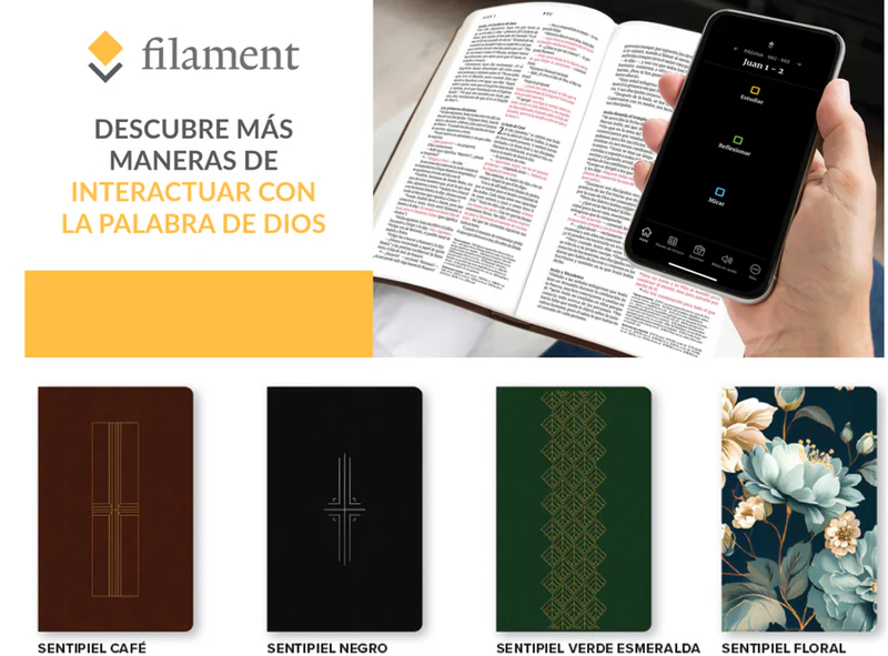 Filament es una aplicación que amplifica el contenido de esta Biblia. Con tan solo escanear los números de página habilitados para Filament, usted podrá acceder instantáneamente a contenido útil y profundo, centrado en el pasaje que está leyendo.