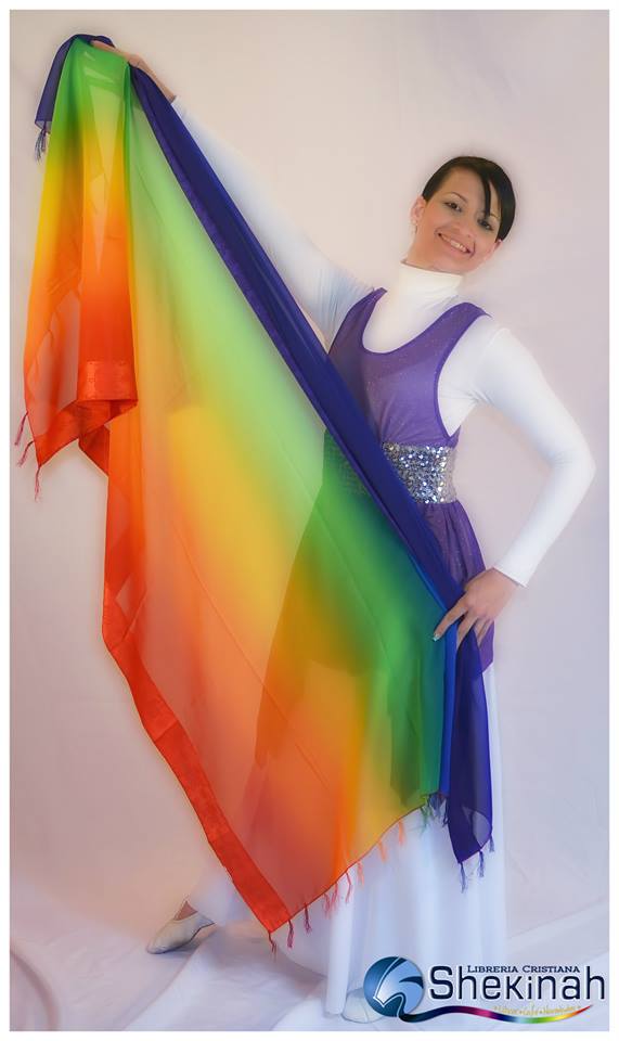 Manto multicolor parecido al arcoiris. En Seda