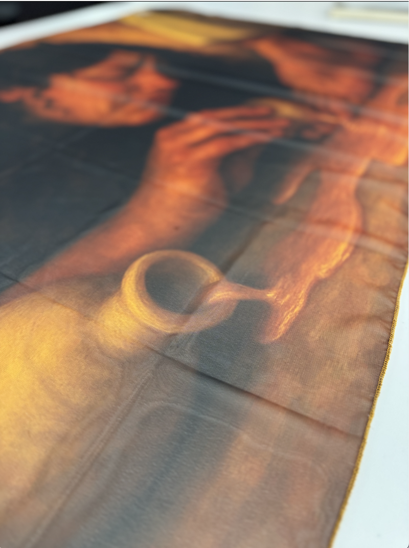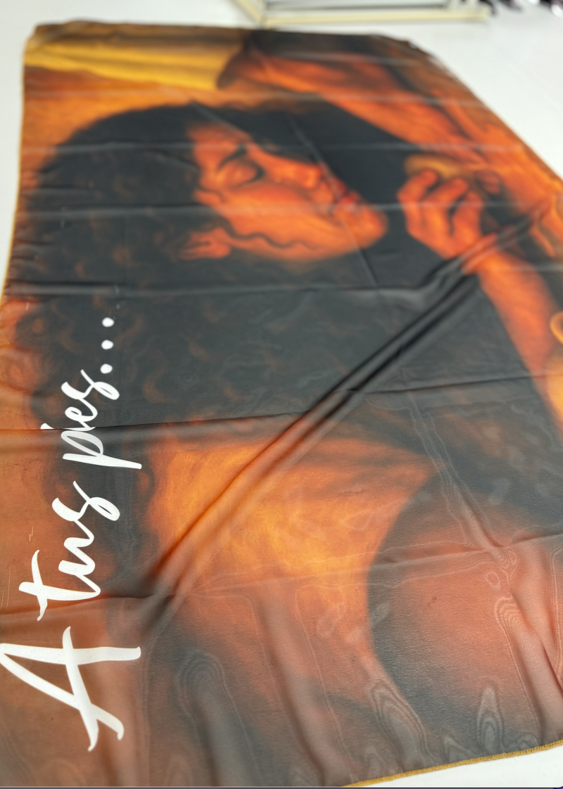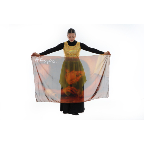 Hermoso manto en material opera, tamaño 35" X 57".