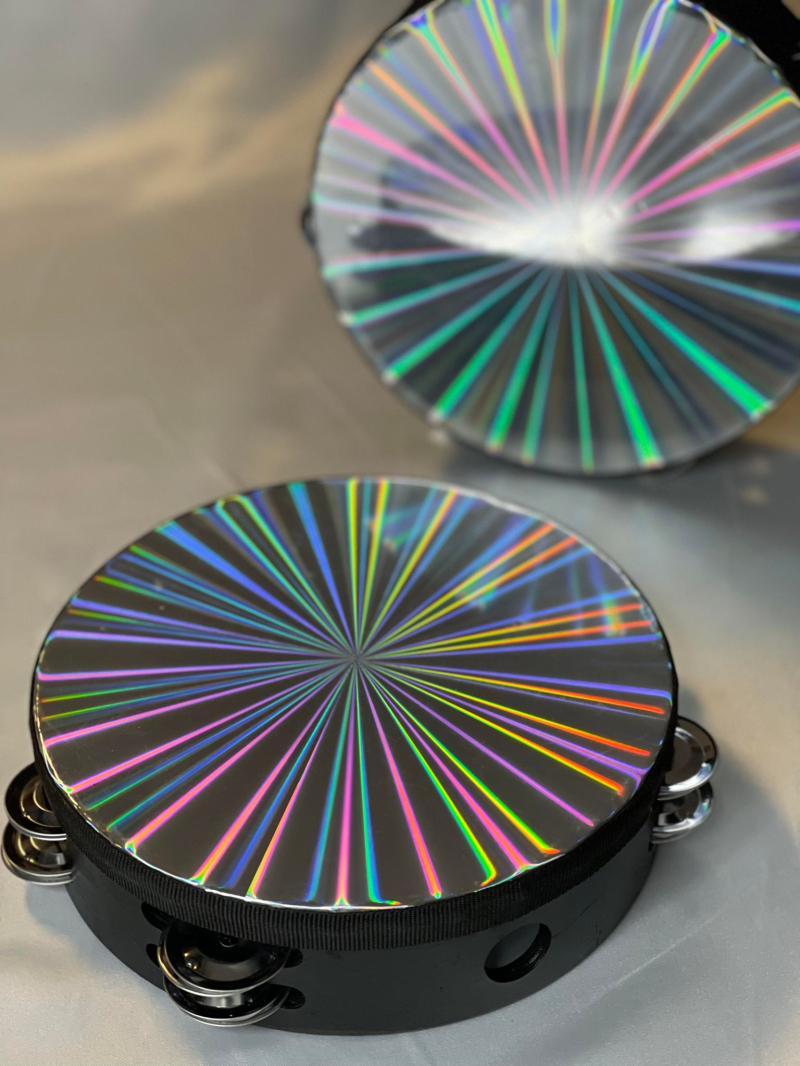 Panderos economicos! laminilla radiante. 6, 8 ó 10 pulgadas de diametro 4 sonajeros.