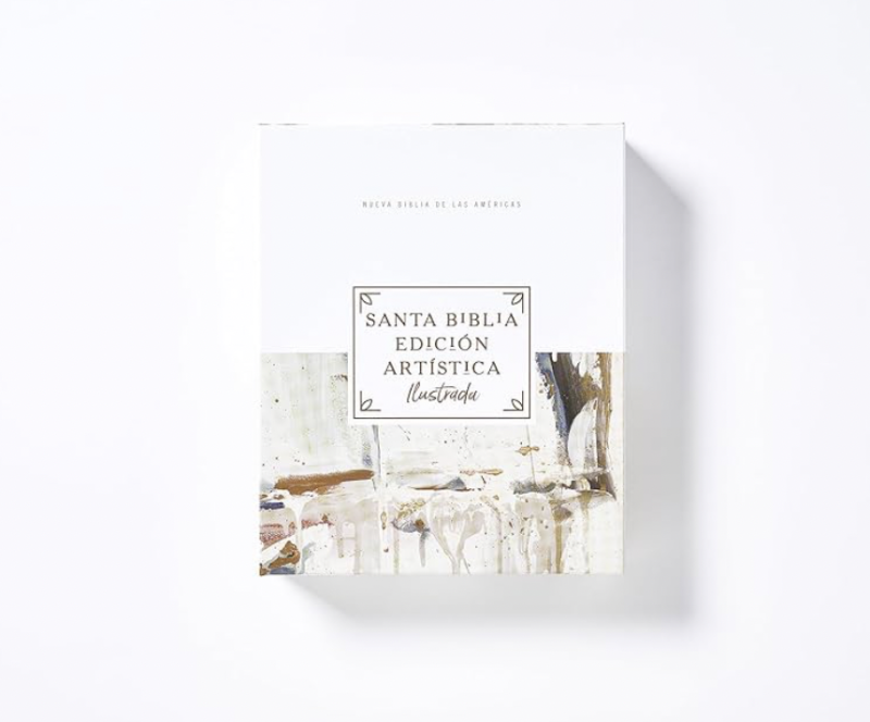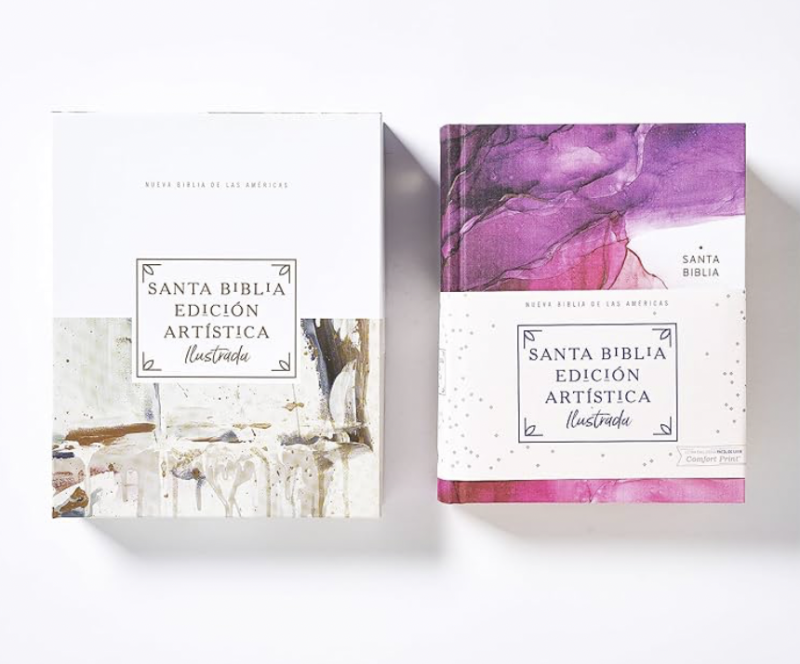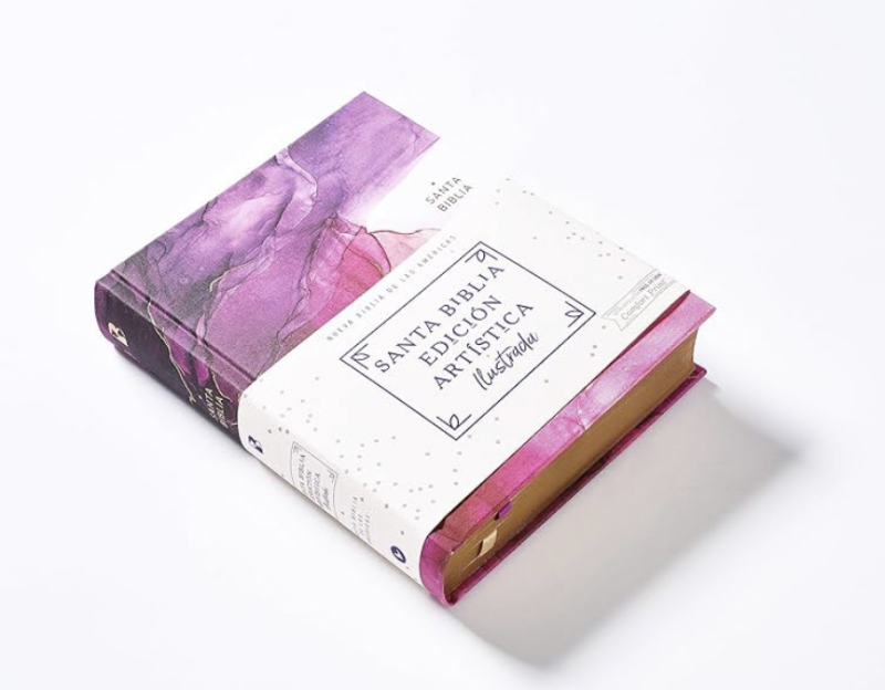 Nueva Biblia de las Americas, con un diseño de cubierta pintada a mano...