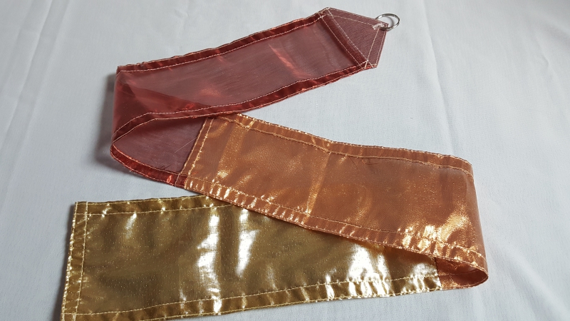 Streamer de color combinado.  3.5 pulgadas de ancho X 36 pulgadas de largo.  color metalico.   Ideal para niños de 5 años o menos.